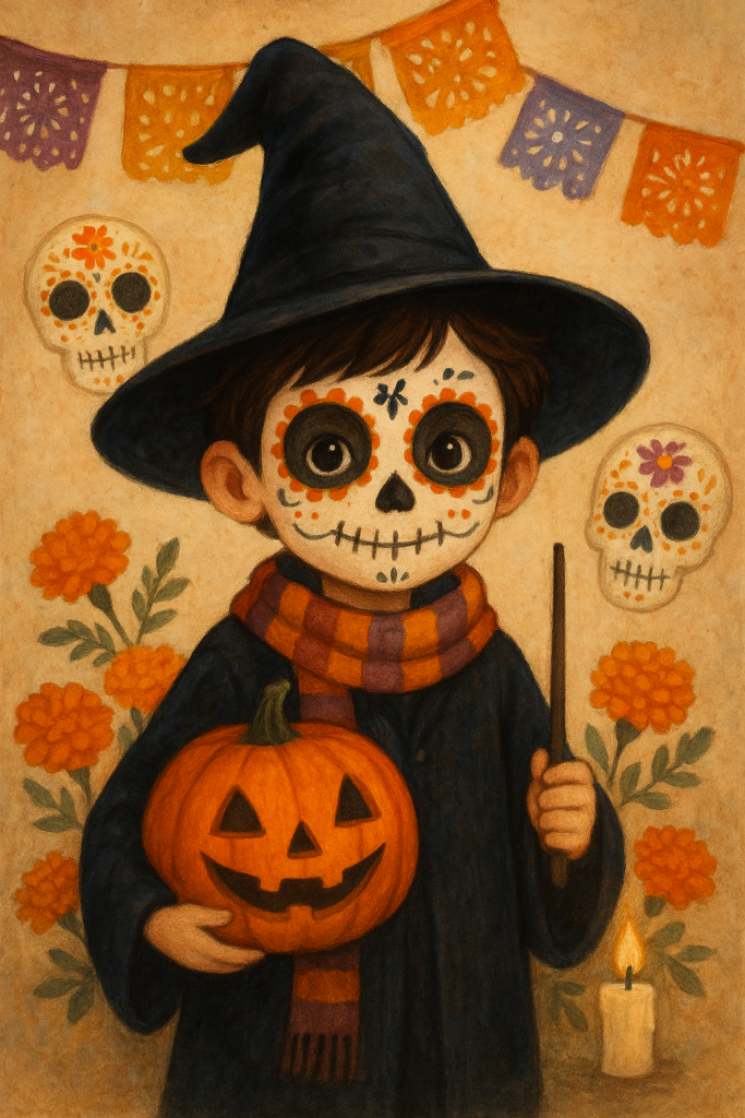 - Ton déguisement d’apprenti sorcier qui part fêter la fête des morts (à porter dès l’arrivée)